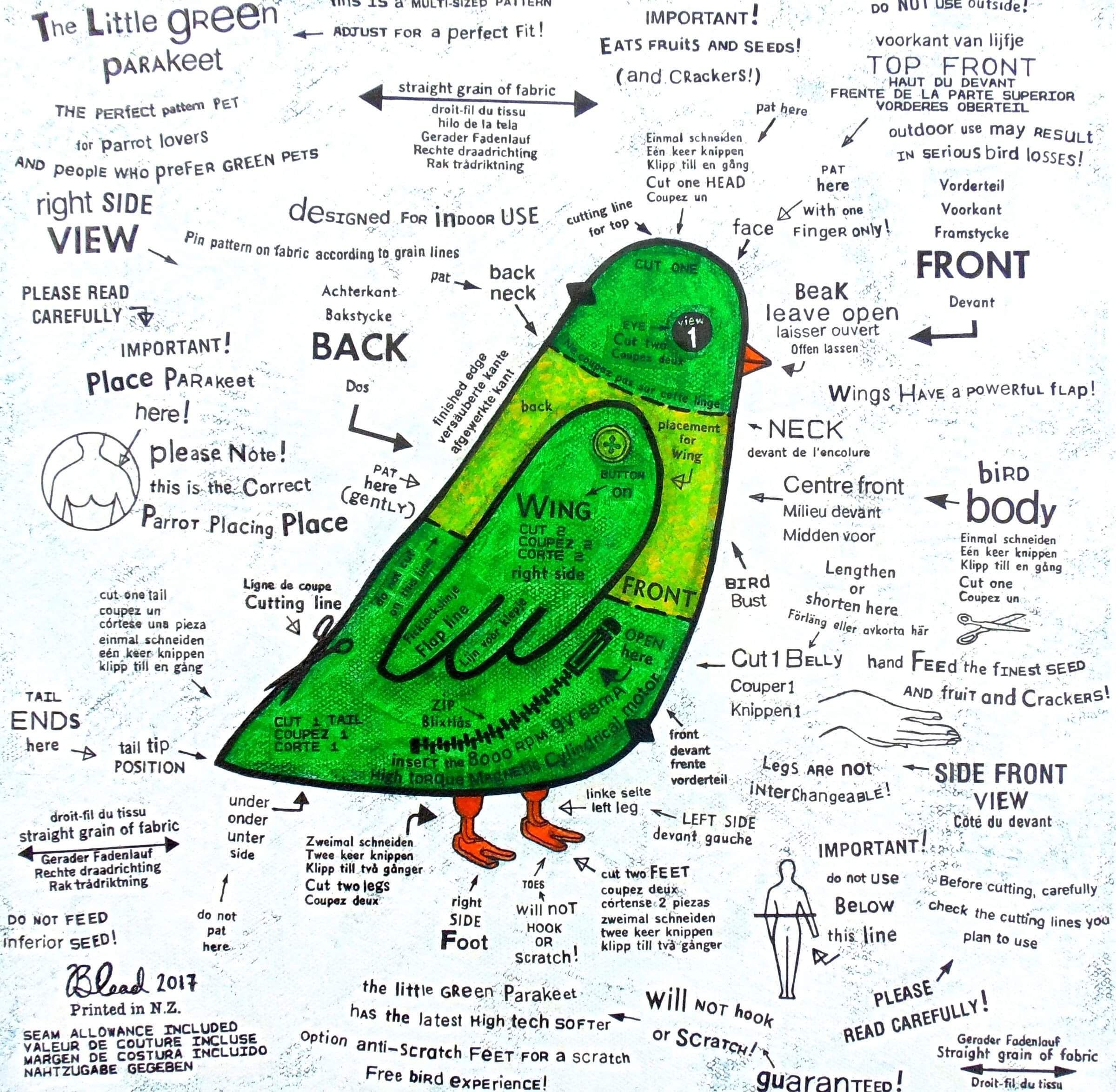 the little green parakeet 30 x 30 cm mixed media on canvas $450